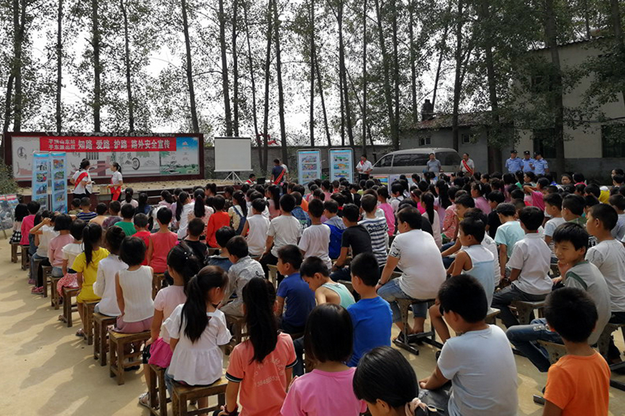 圖一:深入學(xué)校開(kāi)展路外安全宣傳教育活動(dòng)。